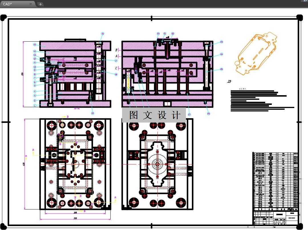 模具设计必须先规划整体的设计,此次整体结构设计的主要内容是:模具分型面的设计、流道的布置、浇口位置的选择、模具工作零件的结构设计和它们的理论计算,还有其他重要部件的设计将会在零件图中,计算的数据在零件图中也会更加具体。设计中会使用到一些制图软件,例如UG、AutoCAD等,制图软件是用来绘制外壳模具的三维立体结构图以及它的二维总装图的,还有外壳的部分零件图也要绘制。另外,还要对一些成型零件的加工工艺进行分析。