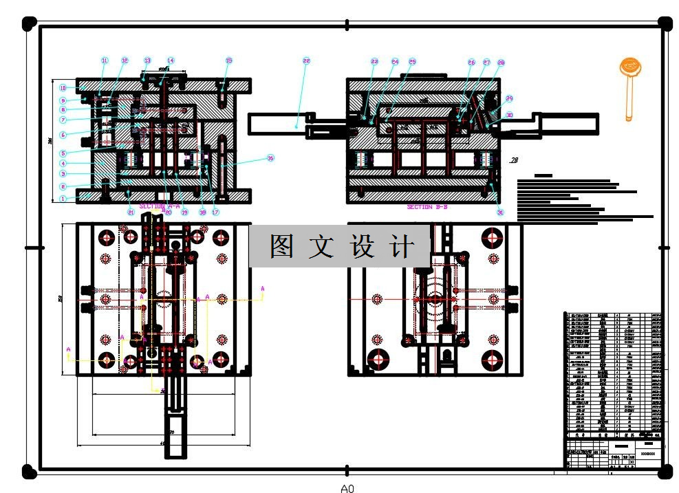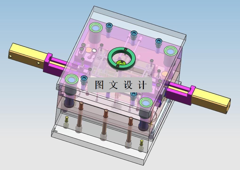 该产品设计为大批量生产,故设计的模具要有较高的注塑效率,浇注系统要能够自动脱模,此外为保证塑件表面质量采用侧浇口,因此选用单分型面注射模,侧浇口自动脱模结构。模具的型腔采用一模两腔平衡布置,浇注系统采用侧浇口成形,推出形式为四推杆推出机构完成塑件的推出。由于塑件的工艺性能要求注塑模中有冷却系统,因此在模具设计中也进行了设计。本次的设计中不仅参考了大量纸质文献,而且在互联网上查阅资料,设计过程比较完整。