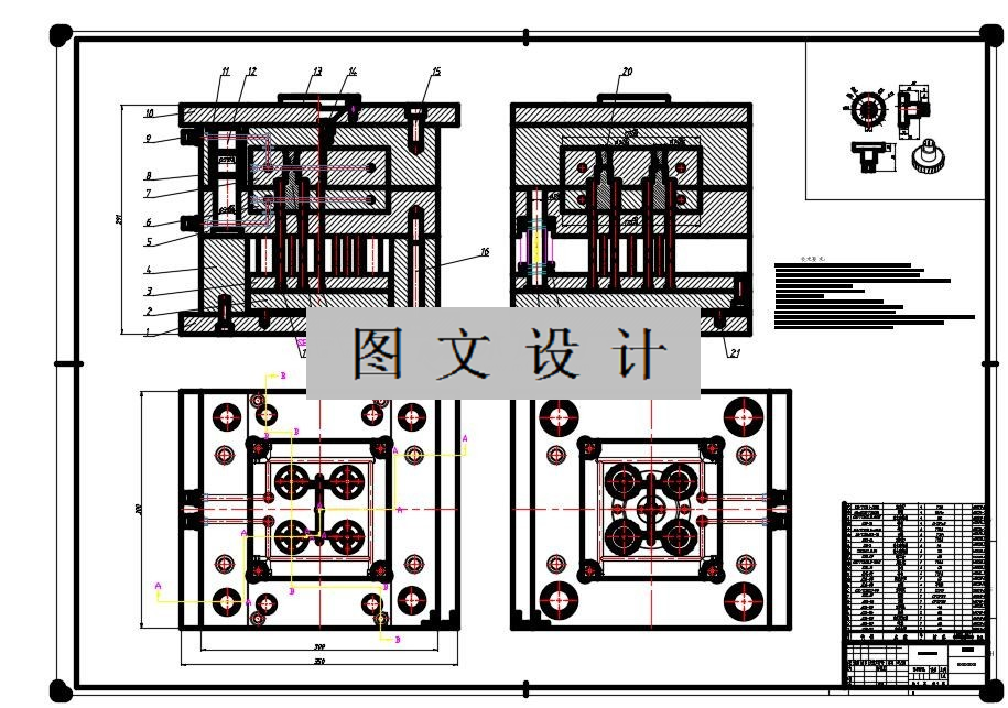 在本设计中进行了塑件工艺性分析、总体方案的设计、注塑机的选择、浇注系统的设计、成型零件的设计、脱模机构的设计、侧抽芯机构的设计及计算、导向和定位机构的设计、模架的选择、冷却系统的设计和计算等设计工作。在本次设计中,需要加工的工件有侧孔,采用了一个由侧型芯、固定件、挡块组成的侧抽芯机构,避免了采用斜导柱结构。