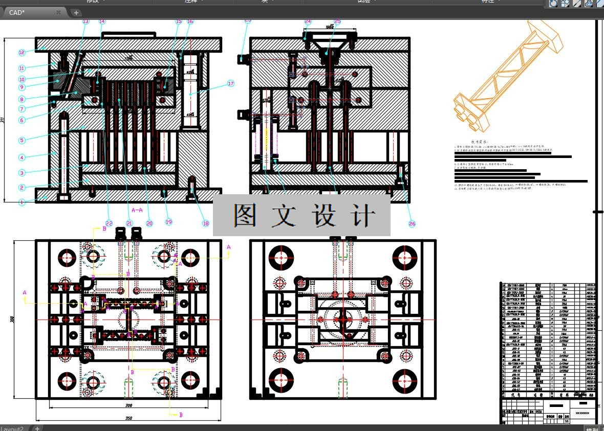 在本设计中进行了塑件工艺性分析、总体方案的设计、注塑机的选择、浇注系统的设计、成型零件的设计、脱模机构的设计、侧抽芯机构的设计及计算、导向和定位机构的设计、模架的选择、冷却系统的设计和计算等设计工作。在本次设计中,需要加工的工件有侧孔,采用了一个由侧型芯、固定件、挡块组成的侧抽芯机构,避免了采用斜导柱结构。