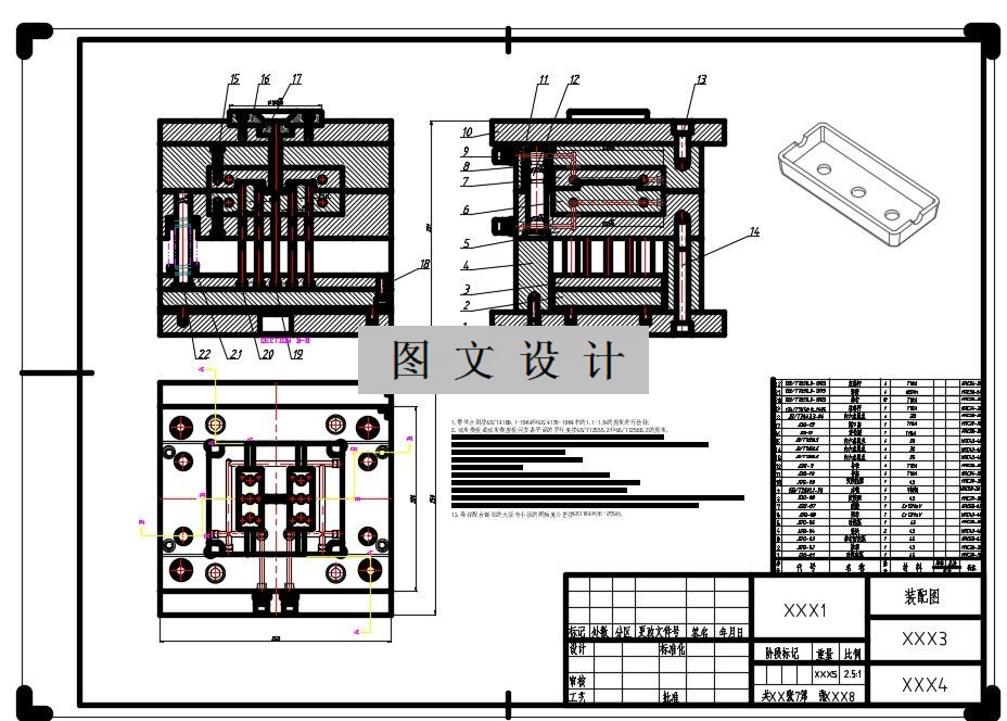 本模具设计的课题是上盒盖注塑模具设计,针对其进行了相关的工艺设计和模具设计。设计中利用CAD和UG对其进行计算与设计,提高了模具设计合理性。介绍了注塑成型的基本原理,利用单分型面组合模具的结构,详细介绍了冷流道注射模具浇注系统和顶出系统的设计过程,并对模具强度做了说明。本模在结构设计,缩短生产周期上,有利于增加模具使用寿命。