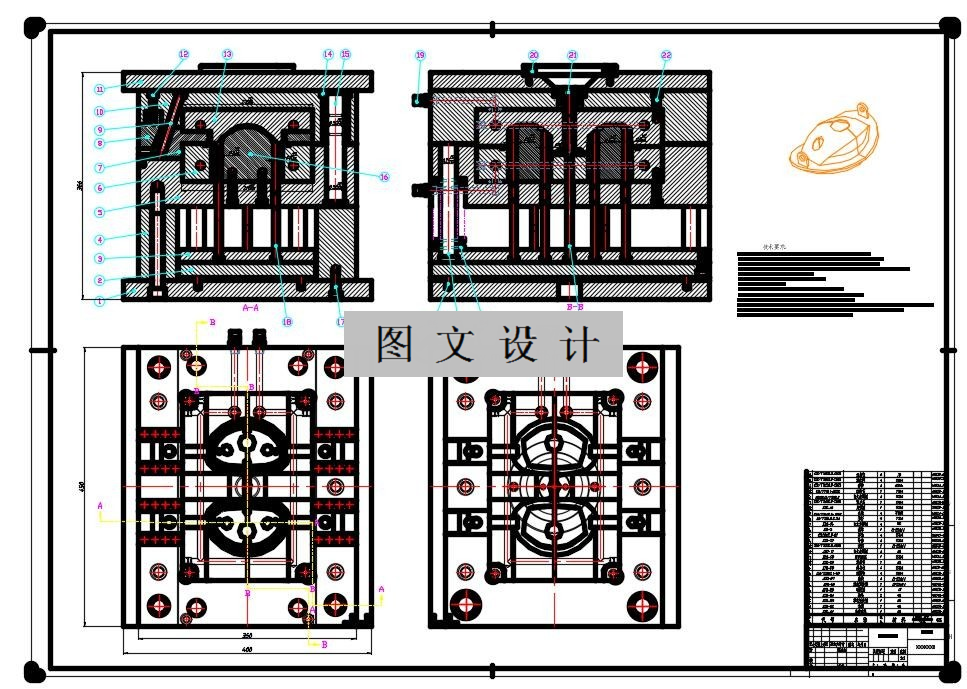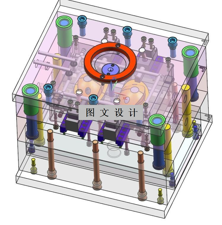 在本设计中进行了塑件工艺性分析、总体方案的设计、注塑机的选择、浇注系统的设计、成型零件的设计、脱模机构的设计、侧抽芯机构的设计及计算、导向和定位机构的设计、模架的选择、冷却系统的设计和计算等设计工作。在本次设计中,需要加工的工件有侧孔,采用了一个由侧型芯、固定件、挡块组成的侧抽芯机构,避免了采用斜导柱结构。