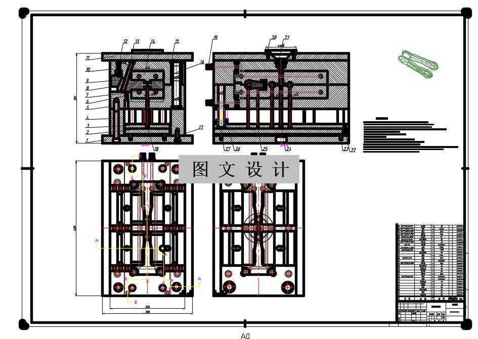 模具设计必须先规划整体的设计,此次整体结构设计的主要内容是:模具分型面的设计、流道的布置、浇口位置的选择、模具工作零件的结构设计和它们的理论计算,还有其他重要部件的设计将会在零件图中,计算的数据在零件图中也会更加具体。