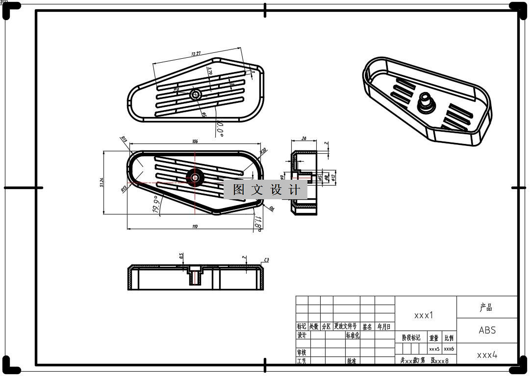 本模具设计的课题是外壳,针对其进行了相关的工艺设计和模具设计。设计中利用CAD和UG对其进行计算与设计,提高了模具设计合理性。介绍了注塑成型的基本原理,利用双分型面与阶梯分型面组合模具的结构,详细介绍了冷流道注射模具浇注系统和顶出系统的设计过程,并对模具强度做了说明。本模在结构设计,缩短生产周期上,有利于增加模具使用寿命。