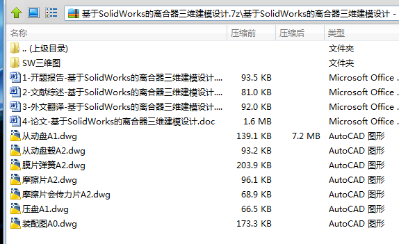 离合器是汽车传动系的重要的一部分,它的构造和传动系有着紧密的关系,本毕业设计论文根据设计所给汽车的各项原参数,设计合适的膜片弹簧离合器。 膜片弹簧离合器设计的内容主要包括压盘总成、从动盘、摩擦片和膜片弹簧四个部分。对离合器各零件的参数、尺寸、材料及结构进行计算选择和设计,然后使用Solidworks作图。