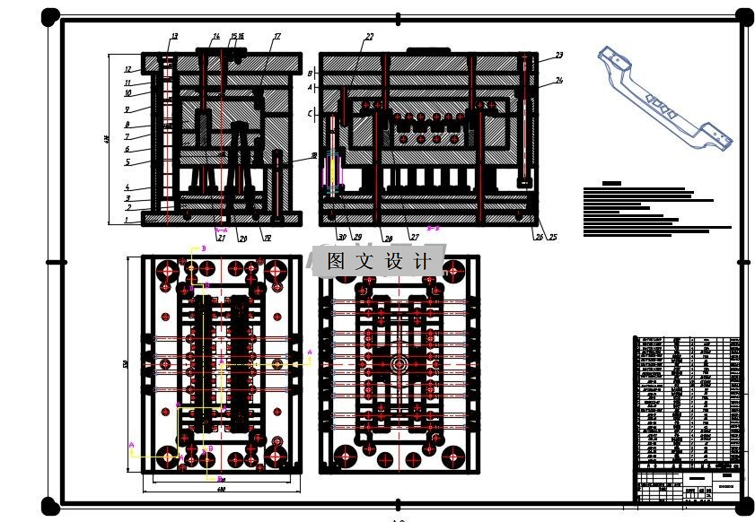 本次设计课题便是围绕这一主题展开。在该塑料模具设计论文中,系统的阐述了拉手模具的整个设计流程,其中主要包括以下几大模块:设计背景及工艺的分析,注射机的选型及工艺参数的确定,浇注系统、成型零部件、冷却系统、脱模机构等的设计以及最后对该模具进行简单的分析等。