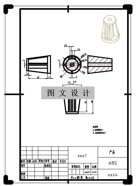 在正确分析塑件工艺特点和材料的性能后,涉及模具结构计算及熔融塑料在模具中流动预测等复杂的工程运算问题;运用CAD等不同的软件分别对模具的设计、制造和产品质量进行分析。塑料件注塑模设计,采用一般精度,利用CAD、二维软件来设计或分析注射模的成型零部件,浇注系统,导向部件和脱模机构等等。综合运用了专业基础、专业课知识设计,其核心知识是塑料成型模具、材料成型技术基础、机械设计、塑料成型工艺、计算机辅助设计、模具CAD等。