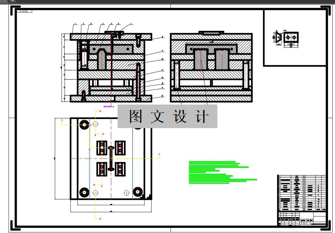 在设计之前分析制件的结构以及材料的性质,并填写成型工艺卡。选择注射机型号及确定注射机的技术规范,设计计算模具结构;模具总体方案拟拟定及说明、结构特点;模架结构、推出脱模机构及复位机构、浇注系统、排气系统、热抽芯系统设计方案、参数计算等;关键零件设计及强度校核。并完成说明书,在说明书上要列出各项参数的计算过程及依据和计算结果。并在设计完要对设计好的模具进行说明,指出哪些地方还不够完善,进一步进行改进。