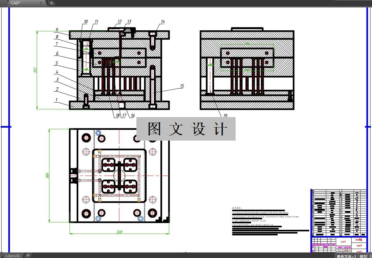 本次课程设计的题目是外壳塑料注塑模具设计,根据成型工艺要求,在原有塑料件的基础上介绍了其注塑成型模具的结构,阐述了模具设计要点及工作过程。首先要从塑料生产工艺上对所要设计的产品进行工艺的分析与计算,然后在分析计算的基础上并参看相关的资料确定成型工艺方案,再在此基础上进入模具总装配图的结构设计。在此基础上对注塑模具的主要零部件的尺寸进行设计与计算,期间要参考大量与塑料成型相关的资料和翻阅各种模具设计手册,并通过计算以确定模具的具体结构及尺寸,通过不断的计算与修改,并在指导老师的悉心关怀和耐心指导下进行不间断的反复修改,最终独立完成这次课程设计。在设计的过程中,首先要解决对外壳的测绘。在模具设计时对分型面的选择、浇口形式与位置的确定、型腔位置的安排、冷却水道的设置。由于是小批量的生产,该注射模采用了1模4腔的结构。
