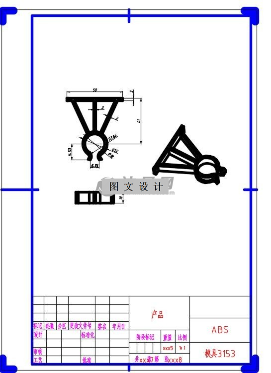 在本模具的具体设计过程中,根据塑料制品的外观要求,了解塑件的用途,分析塑件的工艺性、尺寸要求以及尺寸精度等技术要求,经讨论分析,最终对该模具采用一模两腔,侧浇口进料;经过对各参数的多次校核,最终选择了型号为XS-ZY-125的注射机;通过CAD和UG绘制二维总装图、零件图以及模具3D图;并附上论文说明,系统地运用简要文字、简明示意图以及计算等分析塑件,从而对该塑件作出合理的模具设计。