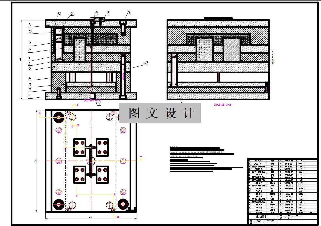 本次设计主要对壳类注射模的设计,提出了模具设计的关键点,设计了模具的整体结构。根据塑件分型面的位置,设计了推杆推出结构,零件采用了单分型面的侧浇口,提高了注射的质量,以及自动化程度,提高生产质量。通过对塑件进行工艺的分析及其结构分析,从产品结构工艺性,具体模具结构出发,对模具的浇注系统、模具成型部分的结构、顶出系统、注射机的选择及有关参数的校核都有详细的设计。该模具一模4腔经过生产验证,该模具结构合理,动作可靠。1634923