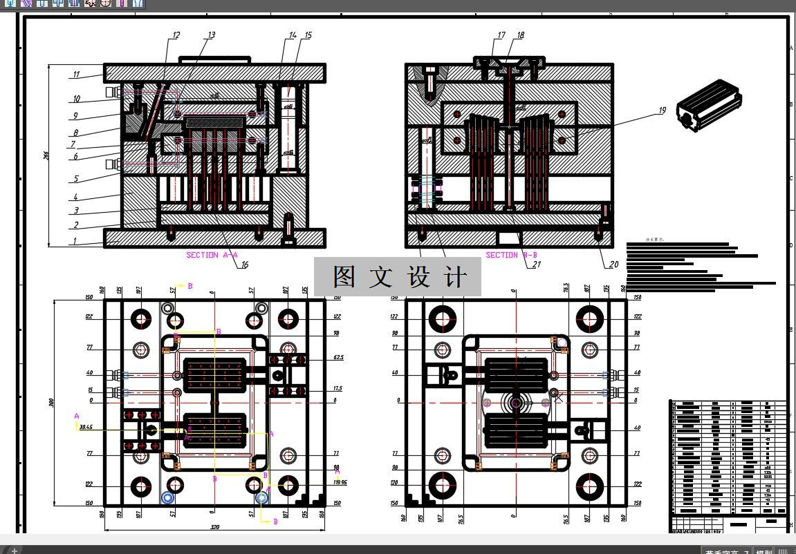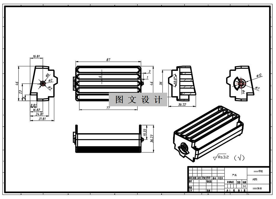 在本模具的具体设计过程中,根据塑料制品的外观要求,了解塑件的用途,分析塑件的工艺性、尺寸要求以及尺寸精度等技术要求,经讨论分析,最终对该模具采用一模两腔,侧浇口进料;经过对各参数的多次校核,最终选择了型号为XS-ZY-125的注射机;通过CAD和UG绘制二维总装图、零件图以及模具3D图,系统地运用简要文字、简明示意图以及计算等分析塑件,从而对该塑件作出合理的模具设计。