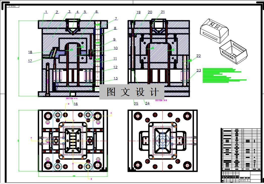 设计的远动原理:首先张开的,定模板和中间板,主要的功能就是为了使浇口与塑件断开,张开的距离就由定距拉杆来限制, 其实,是定模座板与中间板张开, 主要的作用就是使主流道从浇口套里面脱出, 致使整个浇注系统全部脱离模具,最后,是动模板和定模板的张开,使模具进行分型,这个时候,斜导柱带动滑块完成侧向抽芯,同时 推出机构将塑件推出。在这个过程中,起到关键作用的就是,定距拉杆,与模胚开闭器。