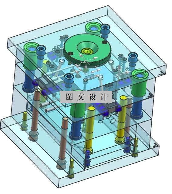 工作原理:合模后,从注射机喷嘴中注射出的塑料熔体经由开设在定模上的主流道进入模具,再经由分流道及浇口注入和充满型腔。在保压、补缩和冷却定型后,合模系统便带动动模后退,从而使动模和定模从分型面分开,浇注系统凝料在拉料杆的约束下从浇口套中脱出,并和塑件一起随动模运动,使型芯脱离制品,当动模后退到一定位置时,内部推出脱 模机构会在注射机推出装置作用下与动模其他部分产生相对运动,利用推杆使制品和浇注系统凝料从型芯上以及在动模一侧的分流道中推出 脱落,制品脱出后,带弹簧的复位杆会带动脱模机构优先复位,然后滑块在斜导柱的作用下复位,从而完成一次注射成型过程。