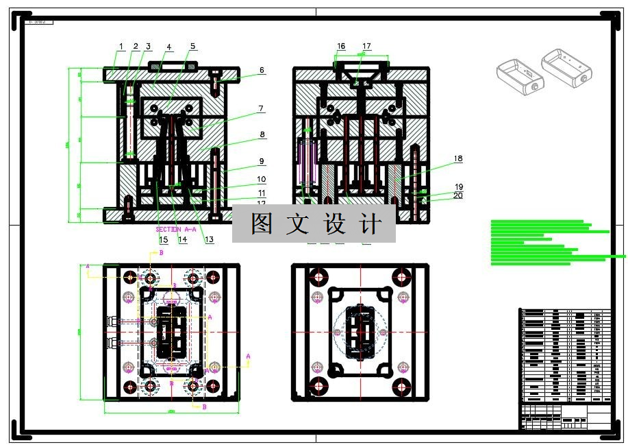 根据该塑件的结构特点,模具设计为上下开模。为了使模具与注射机相匹配以提高生产力和经济性、保证塑件精度,并考虑模具设计时应合理确定型腔数目,该模具选择一次开模及一模二腔