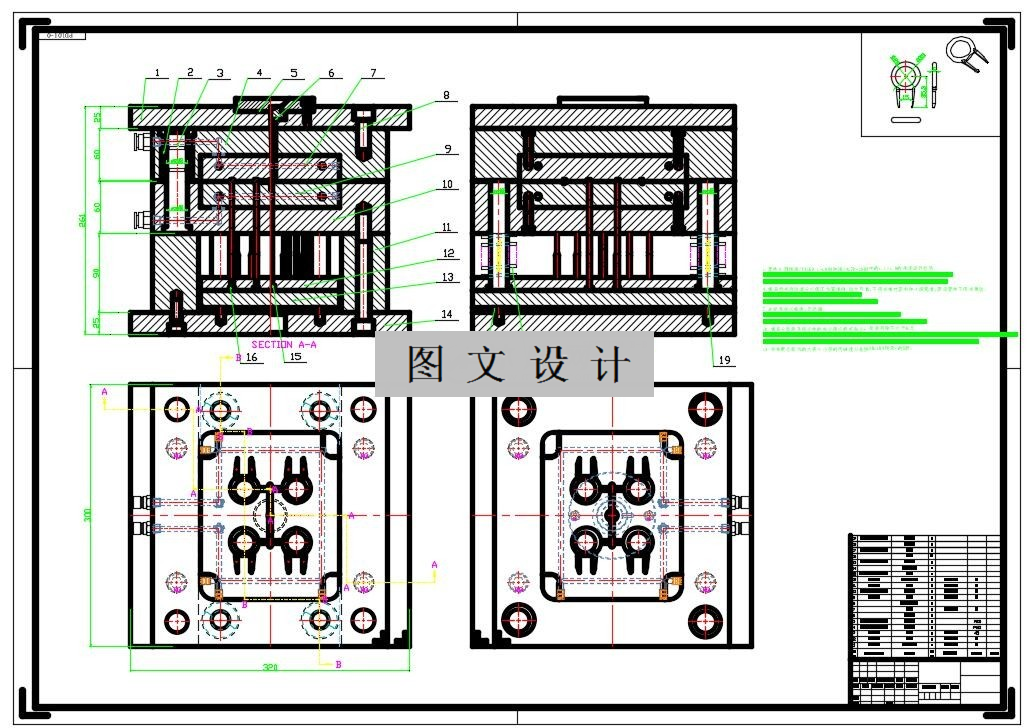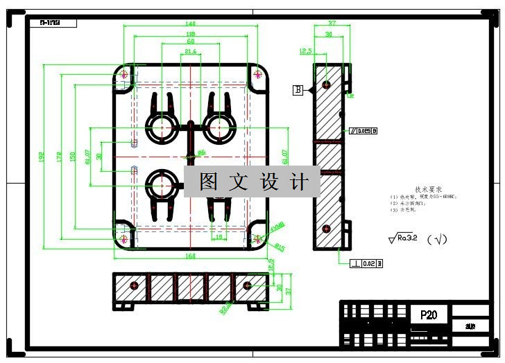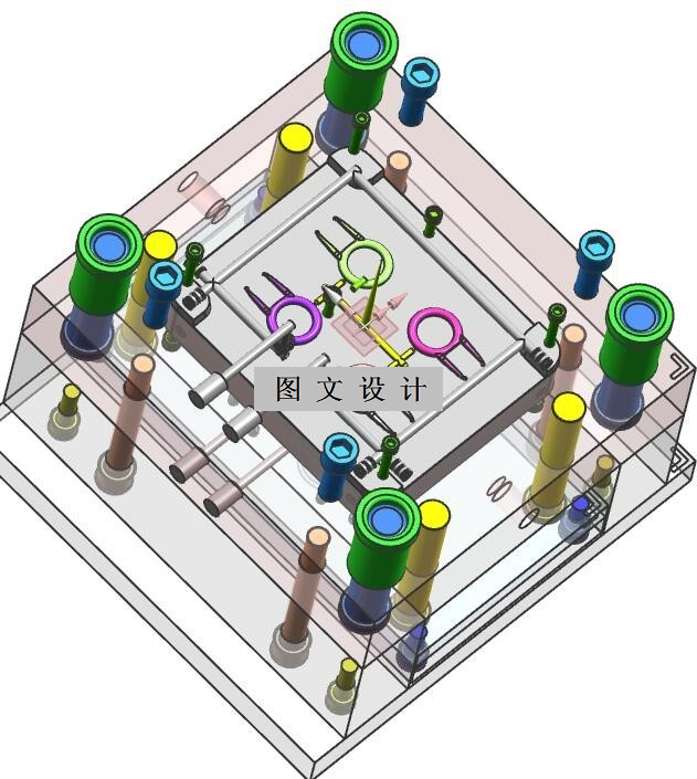 本设计为键盘安装器塑料件的注塑模的设计。设计了一副一模两腔的注塑模具。设计过程包括模具各个成型零件尺寸的计算,重要工艺参数的选择,以及推出机构、抽芯机构、分型机构、浇注系统、冷却系统等的计算。选择了主要零件的制造材料。