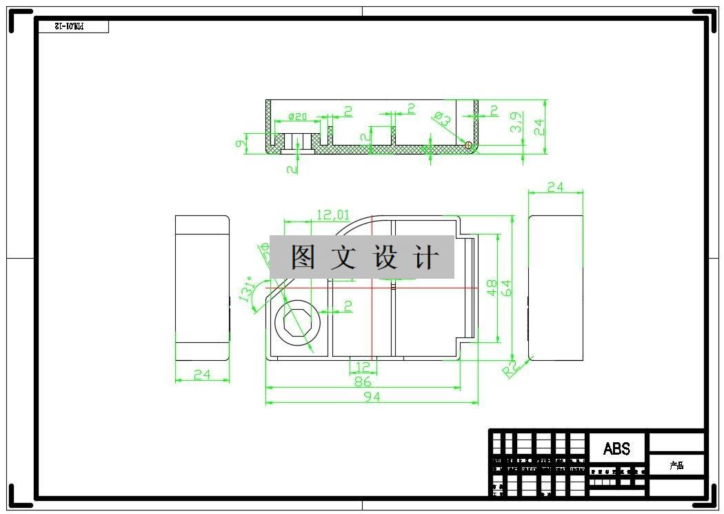 该产品设计为大批量生产,故设计的模具要有较高的注塑效率,浇注系统要能够自动脱模,此外为保证塑件表面质量采用侧浇口,因此选用单分型面注射模,侧浇口自动脱模结构。模具的型腔采用一模两腔平衡布置,浇注系统采用侧浇口成形,推出形式为四推杆推出机构完成塑件的推出。