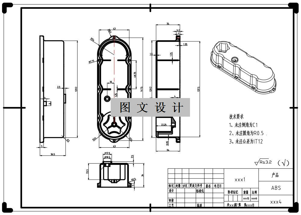 叙述了电器底座注射注塑模具设计与计算的详细过程,介绍了该电器底座的成型工艺、注射注塑模具的结构特点与工作过程, 阐述了在注射模设计中应注意的事项。在对电器底座的注塑模具设计过程中,本设计主要设计要点如下:电器底座的设计比较的合理;分型面的选择有利于电器底座成型;脱模机构的设计不但结构简单,而且脱模动作稳定可靠;进浇口的选择不影响电器底座外观,而且保证电器底座充填均匀;冷却水道的设计使注塑模具效率达到最高,保证电器底座质量要求;在设计的过程中借用分析软件如CAD等使设计更合理、更有效;大量使用标准件,使注塑模具制作成本大大降低;