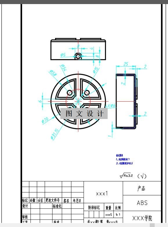 此塑件外形为圆形多孔塑料罩类零件,腔体为25mm深,总体尺寸适中,塑件成型性能良好;塑件1侧有一圆孔,需设计外抽芯机构。尺寸均无特殊要求为自由尺寸,可按MT5级塑料件精度查取公差值。