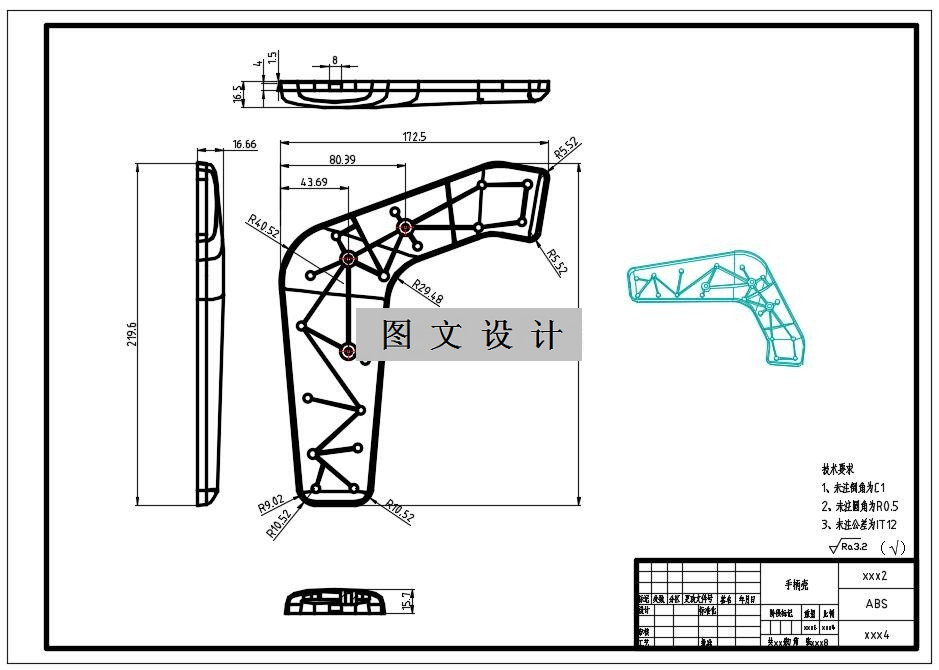 本文详细介绍了模具的浇注系统、模具成型部分结构、顶出系统、冷却系统、注塑机的选择及有关参数的校核等等设计。运用CAD、辅助工程Solid Works等不同的软件分别对模具的设计、制造和产品质量进行分析。连接器壳体塑料注塑模具设计,采用一般精度,利用CAD、UG来设计或分析注射模的成型零部件,浇注系统,导向部件和脱模机构等等。针对手柄外壳的具体结构,该模具采用侧浇口单分型面注射模具。