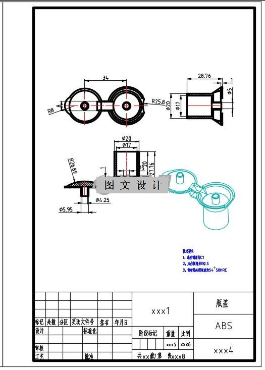 针对瓶盖的具体结构,该模具是设计重点是在侧浇注系统及分型面的设计方面。模具采用一模2腔的侧浇口进浇,采用滑块内抽。其优点在于模具结构简单,提高制造精度,节约材料,大大提高了生产效率以及经济利益。