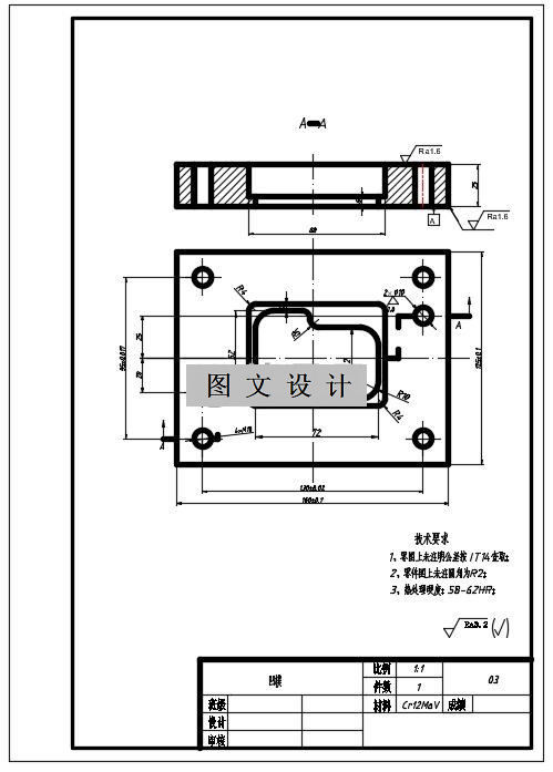 (1)结合工件的外形轮廓可知,工件外形属于圆形,内孔为圆形,材料厚度为2.0mm,工件形状属于不对称产品,根据生产批量,考虑模具的生产寿命,选取相应的模具制造材料。 (2)工件上的最小孔直径为12mm,孔边距为3mm,这些数值均大于材料厚度的1.5倍,所以该零件的结构满足冲裁要求。1461411