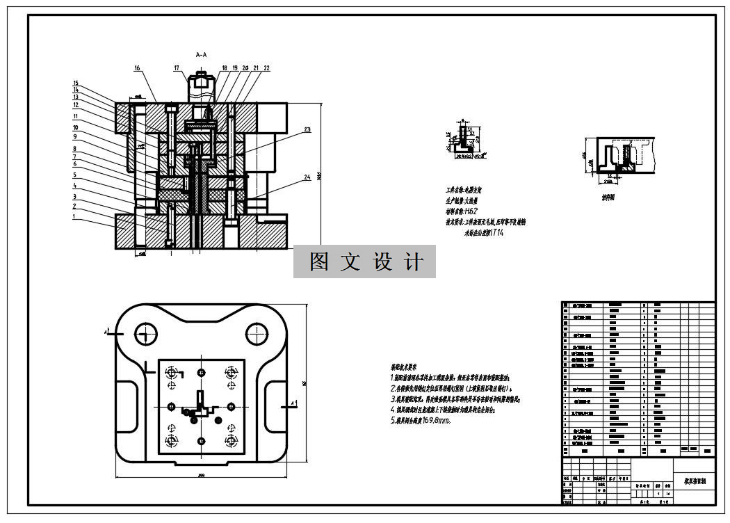 设计方案确定后开始做棑样设计,包括计算材料利用率,冲裁力,弯曲力,冲裁间隙,压力中心等,选取冲压设备,绘制装配草图、装配图、主要工作零件的技术图纸,