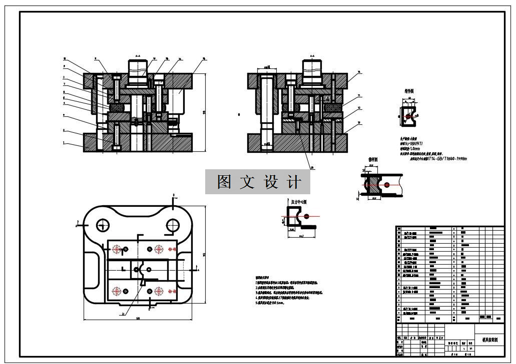 通过模具的凸、凹模冲裁分离即可完成冲裁件的外形,所以不需要再设计精确地导正定位装置,为了方便生产中送料和精准的确定步距,在模具送料方向上设计侧刃挡块,为了防止送料过程中条料发生偏移,在模具凹模上两侧设计导料板。