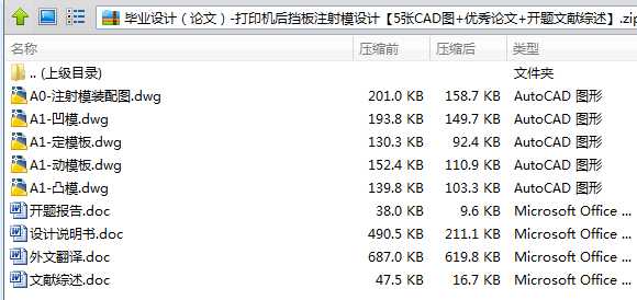 本设计主要用Pro/Ewildfire2.0中的零件造型模块和模具设计模块进行设计的。用AutoCAD2008对打印机后挡板进行二维图形绘制。