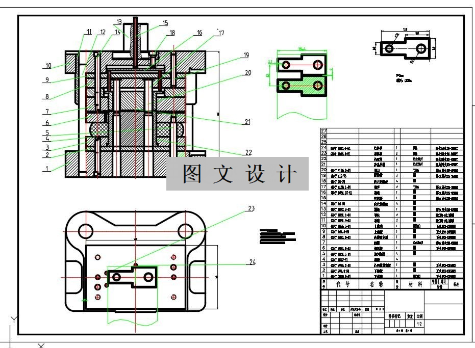 长条双孔垫片外形全部又线条组成,内部两个圆孔,根据设计方案,采用的是倒装复合模,推出方式采用推件块推件,打杆打件的方式,一起有cad装配图,全套零件图