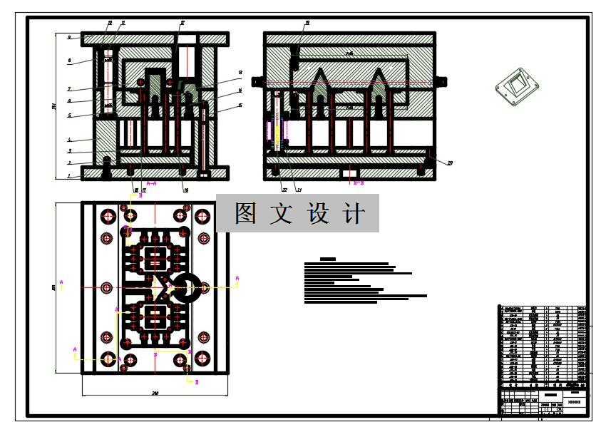 本次设计的课题是张力架模具设计。压铸模具设计主要是动模、定模、镶块、型芯及各辅助零件的设计。重要的就是镶块及型芯的设计计算,主要包括型腔尺寸、型芯尺寸、中心距离及位置尺寸等的设计计算。