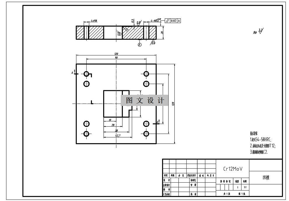 根据工件图纸上的技术要求,包括冲裁件尺寸精度、表面质量、生产批量、冲裁件材料力学性能等综合分析,决定采用单工序模具冲裁。设计方案确定后开始做棑样设计,包括计算材料利用率,冲裁力,弯曲力,冲裁间隙,压力中心等,选取冲压设备,绘制装配草图、装配图、主要工作零件的技术图纸,最后编写设计说明书并准备答辩。