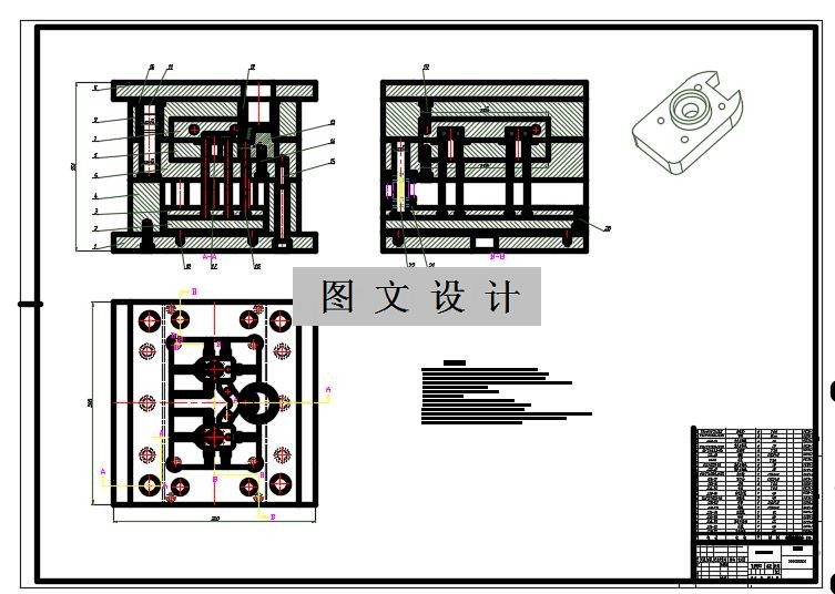 底座F压铸模设计,铸件比较简单,铸件比较简单,分型面在铸件的最大外形处,推出机构采用的推杆推出,冷却系统采用的环绕式的冷却,模具还需布置溢流槽。1460914
