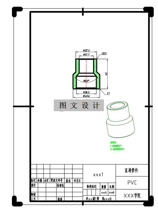 直通管件注塑模设计是两个圆柱构成,塑件是中空的,零件图比较简单,采用一模2腔,单分型面的结构,全套设计有装配图,塑件尺寸图,加说明书,内容准确,全面