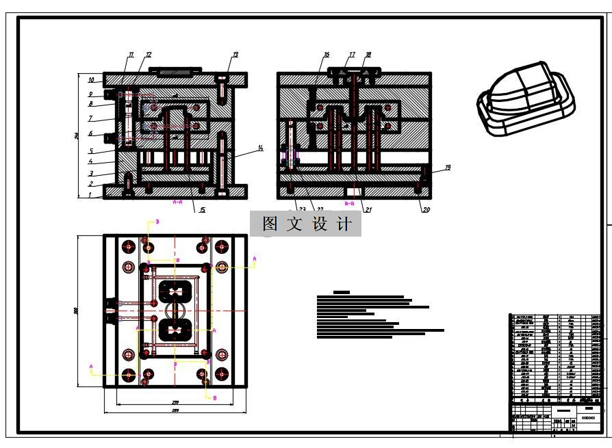 外壳采用侧浇口,推杆顶料,推件板完成脱模,该模具结构紧凑,工作可靠,生产效率高。最后分析了模具的工作过程,对模具结构与注射机的匹配进行了校核。1460682