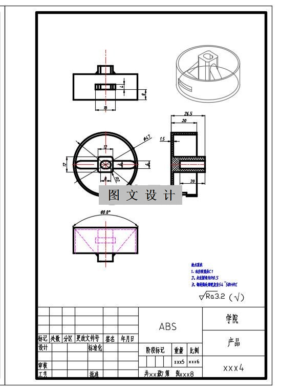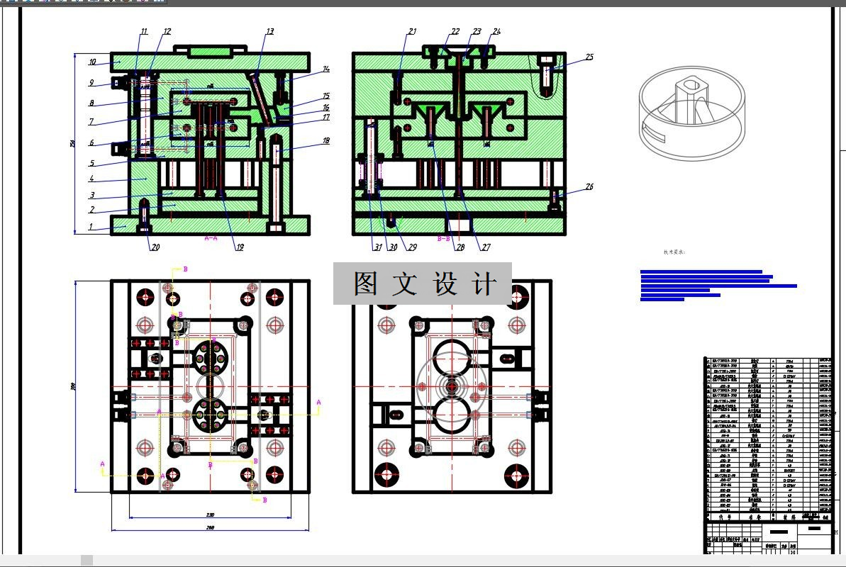 此说明书介绍了圆形底座注塑成型工艺分析及模具设计。着重介绍了简化式两板模的模具设计。该模具为大水口工字型注塑模,由于模具的型芯型腔的结构尺寸不是很大,结构相对较为复杂(需要有侧抽机构),型芯型腔结构采用组合式,可以采用数控铣、电火花、线切割等进行加工。1460350