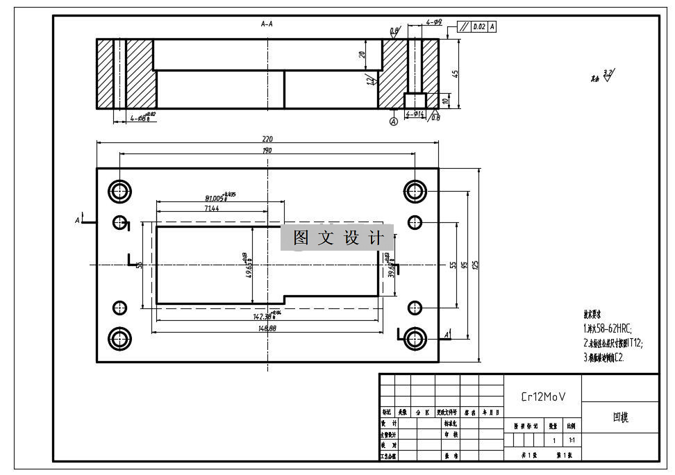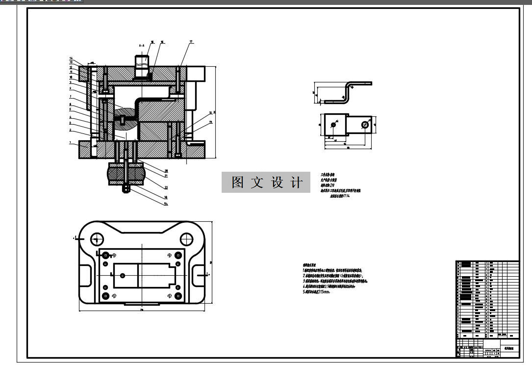 题名称为弯曲板冲压模具设计,工件名称为弯曲板,材料为T1紫铜,工件厚度尺寸较大。分析其工件工艺组成,改工件分别由落料、冲孔、弯曲工艺组成,根根据其工艺组成,拟定冲压工艺路线,确定工艺方案,进一步确定模具结构;1460345