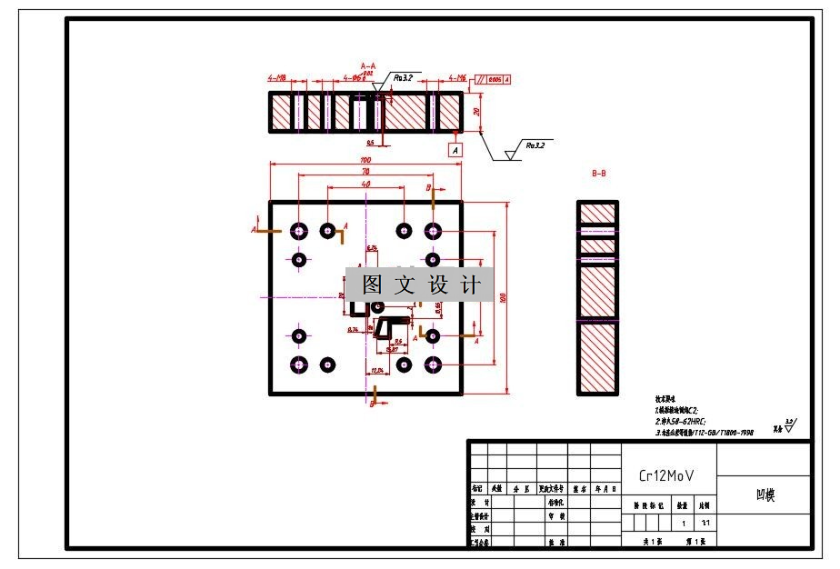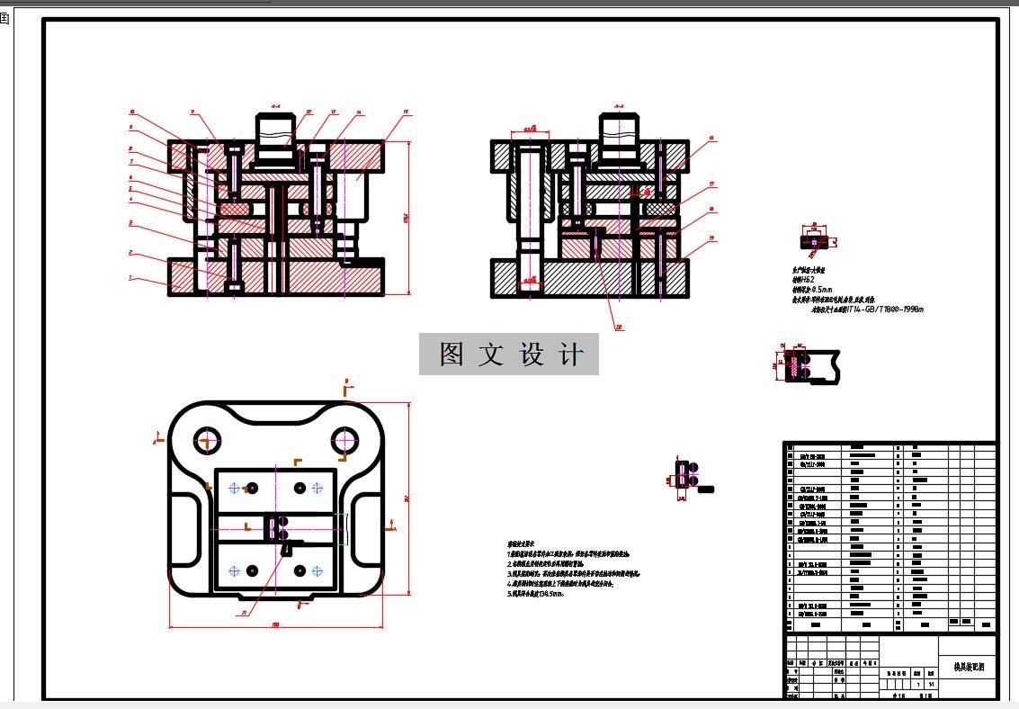 在模具设计前主要查找工件图纸中未标注公差的尺寸公差,根据尺寸公差来确定模具制造的精度,经过排样分析以后,开始进行模具的结构设计,计算模具的闭合高度、卸料力、冲裁力、冲裁间隙、模具装配配合间隙、凸模高度、压力中心、模具总压力,根据总冲压力选择冲压设备;1460342