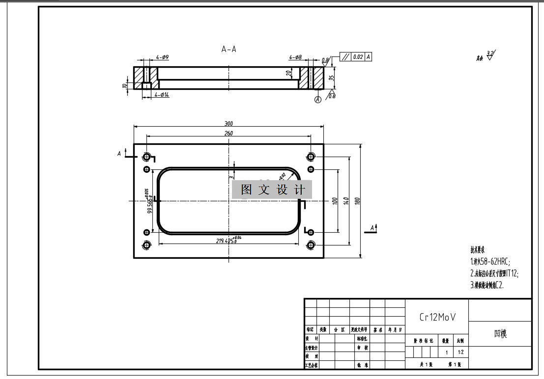 从冲裁件结构分析,工件外形为矩形,轮廓为圆弧相切,工件形状为纵横轴对称和中心对称。从冲裁件的工艺上来分析,冲裁件由落料、冲孔组成,根据冲裁件的工艺组成,确定复合冲裁的方案,模具结构采用倒装式复合模。 1460339