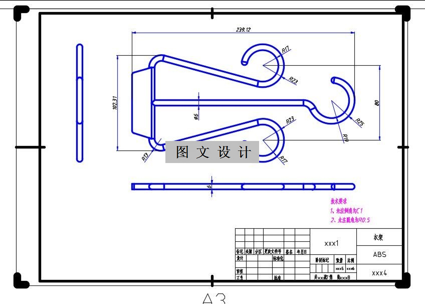 用UG和AutoCAD软件进行辅助设计,并编制了模具设计说明书,通过软件对塑件、型腔、型芯、模架、模具装配图、零件图进行设计以及对模具零件、模具结构进行计算和校核,找出让设计趋于合理解决方案,最终得到满意的模具结构。三维,二维。1460310