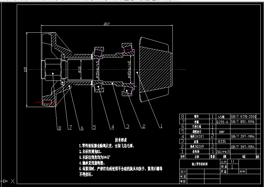 方案确定主要依据原始设计参数,对比同类型的减速器及差速器,确定此轮的传动比,并对其中重要的齿轮进行齿面接触和齿轮弯曲疲劳强度的校核。而对轴的设计过程中着重齿轮的布置,并对其受最大载荷的危险截面进行强度校核。工艺分析主要是对齿轮加工进行工艺规程的确定以及工艺卡片的制作。