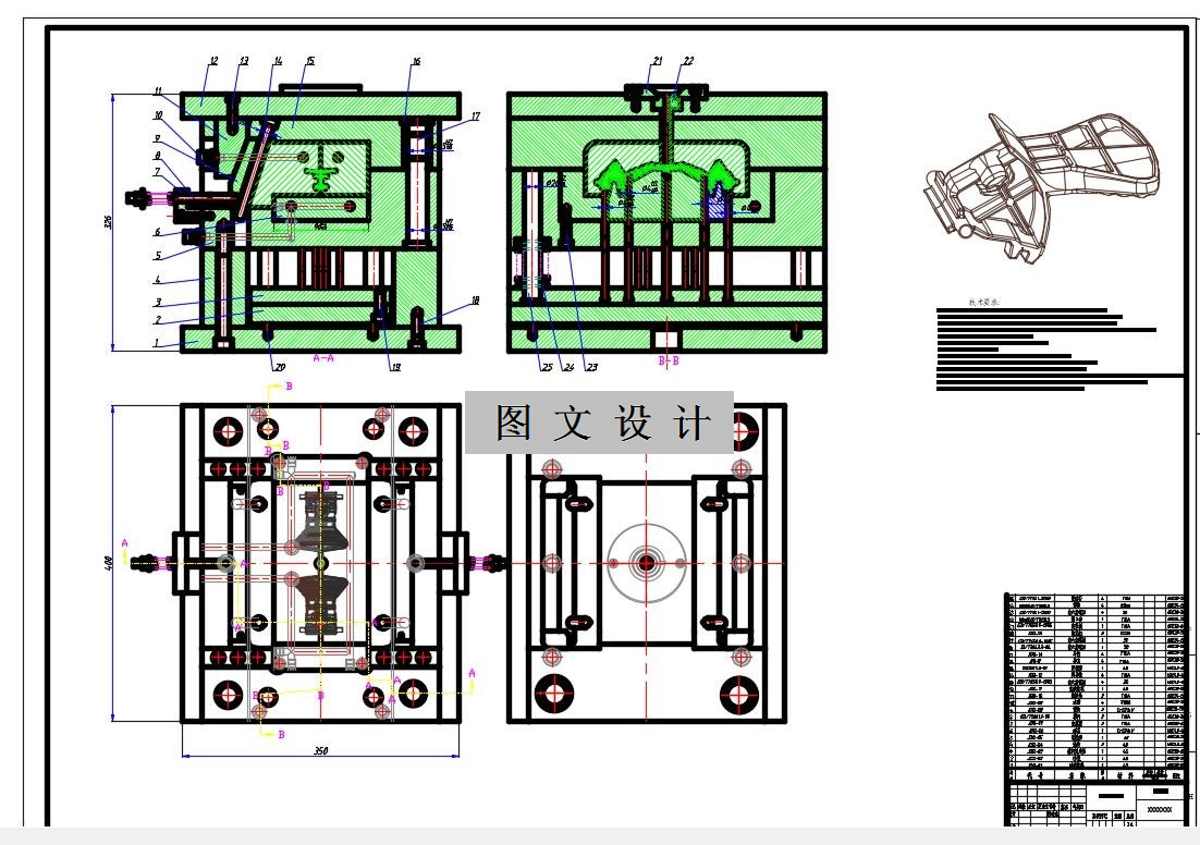 发动机内置卡件注塑模设计塑件较为复杂,塑件内部有凹槽,采用滑块抽芯,一起有模具三维,cad装配图,全套非标零件图,加说明书,推出机构采用推杆推出