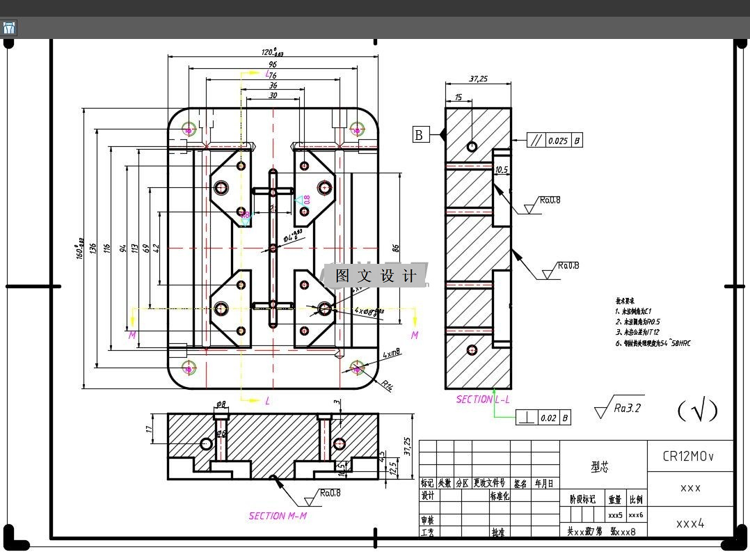 该产品形状如中规中矩型零件,精度及表面粗糙度要求较高,不允许有明显的熔接痕、飞边等工艺痕迹,需要一定的配合精度要求。制品整体有充分的脱模斜度,各处脱模力比较合理。从整体结构分析:制品表面积较大、高度不大但是壁薄、零件的曲面复杂,型腔、型芯加工困难。从整体工艺性分析:根据制品外观要求与结构特定要求选择侧浇口,制品薄而大要求冷却必须均匀而充分,脱模力合理要求顶出机构顶出均匀,采用侧抽芯进行脱模。1460164