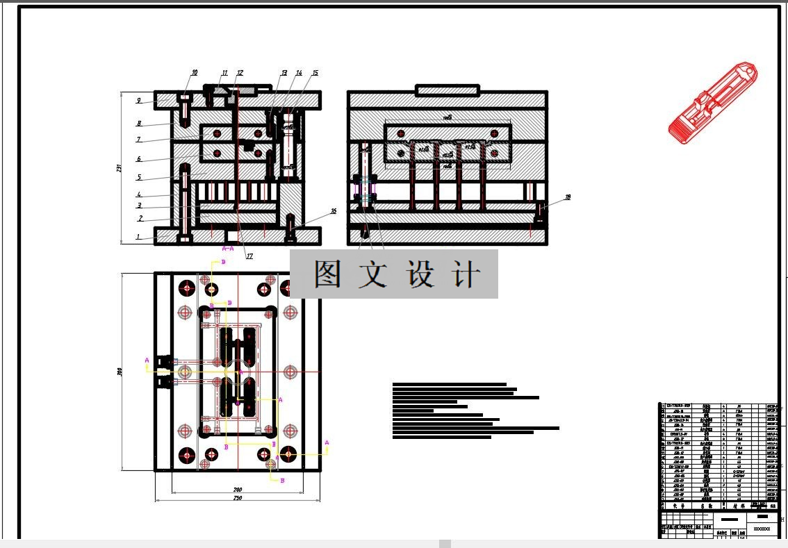 本设计介绍了塑料夹子注射成型的基本过程,对注塑产品提出了基本的设计原则;详细介绍了塑件成型工艺设计,注射机的选择,浇注系统的的设计,成型零件的结构设计,脱模推出机构的设计,冷却系统的设计的过程。通过本次设计,使我掌握了注塑模具设计的全过程,同时也提高了运用CAD绘制复杂装配图的能力。