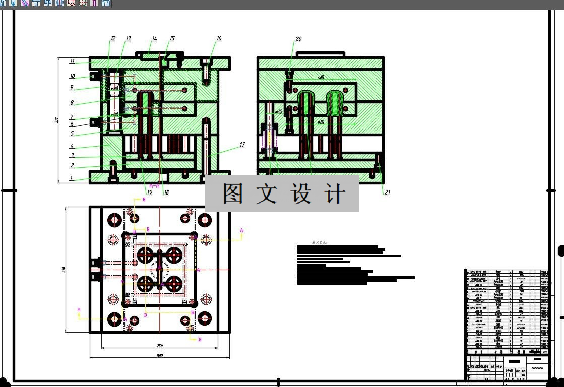 本模具设计最关键的一点就是设计已达到实际生产的要求在设计过程中,为了更清楚的表达模具的内部结构,因此附有大量的模具结构图和模具局部图,并通过通过cad软件画出它的二维图和零件图。1459886