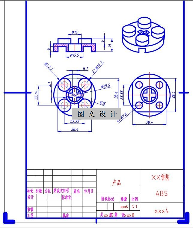 在模具设计之前需要对塑件的工艺性如形状结构、尺寸大小、精度等级和表面质量要进行仔细研究和分析,只有这样才能恰当确定塑件制品所需的模具结构和模具精度。 本设计课题-底座如图所示,具体结构和尺寸详见图纸,该塑件结构简单,生产量大,要求较低的模具成本,成型容易,精度要求不高。1459840