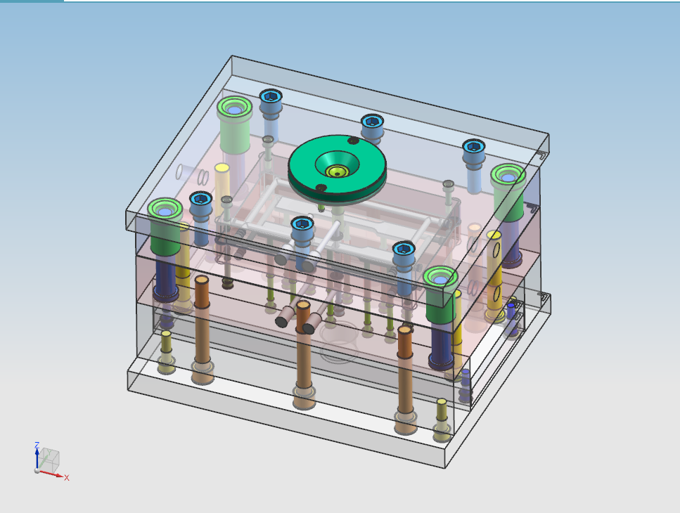 关键字:浇注系统,推出机构,型芯,型腔。