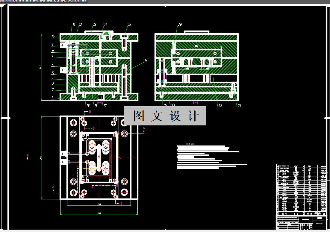 通过对塑件进行工艺的分析及其结构分析,从产品结构工艺性,具体模具结构出发,对模具的浇注系统、模具成型部分的结构、顶出系统、注射机的选择及有关参数的校核都有详细的设计。该模具一模4腔经过生产验证,该模具结构合理,动作可靠。