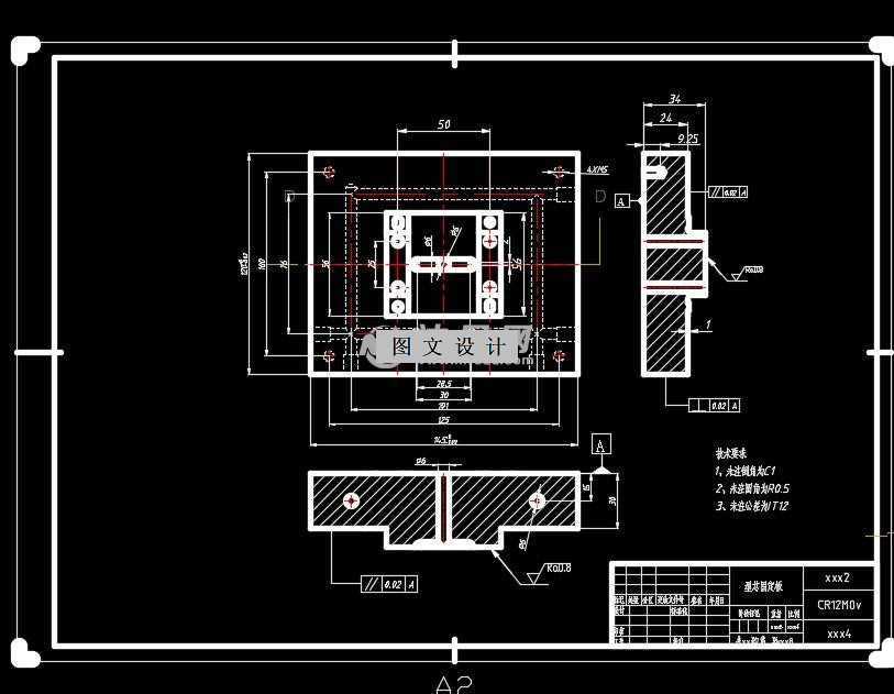 支架(卡绔)注塑模设计是采用一模两腔,侧浇口,推杆推出,浇口形式采用是侧浇口,模架采用标准龙记模架,型芯,型腔采用整体的嵌入式,图纸全套,标注详细1459633