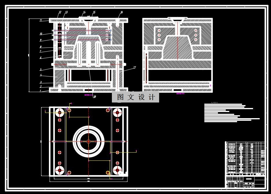 本课题主要是设计塑料盆注塑模设计,通过对塑件的工艺性以及产品的外形进行分析,并利用相关软件绘制装配图和注塑模具型芯、型腔及重要零部件零件图。图纸和说明书全套都具有。1459594